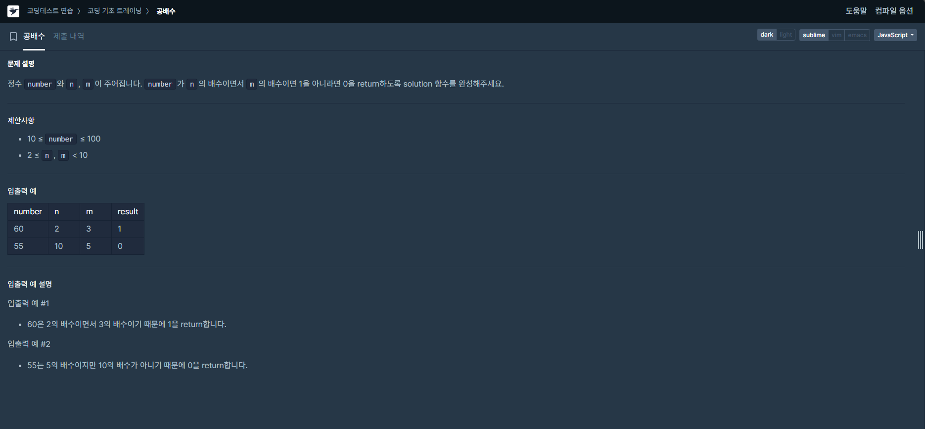 [프로그래머스] 코딩 기초 트레이닝 - "공배수" (Javascript)