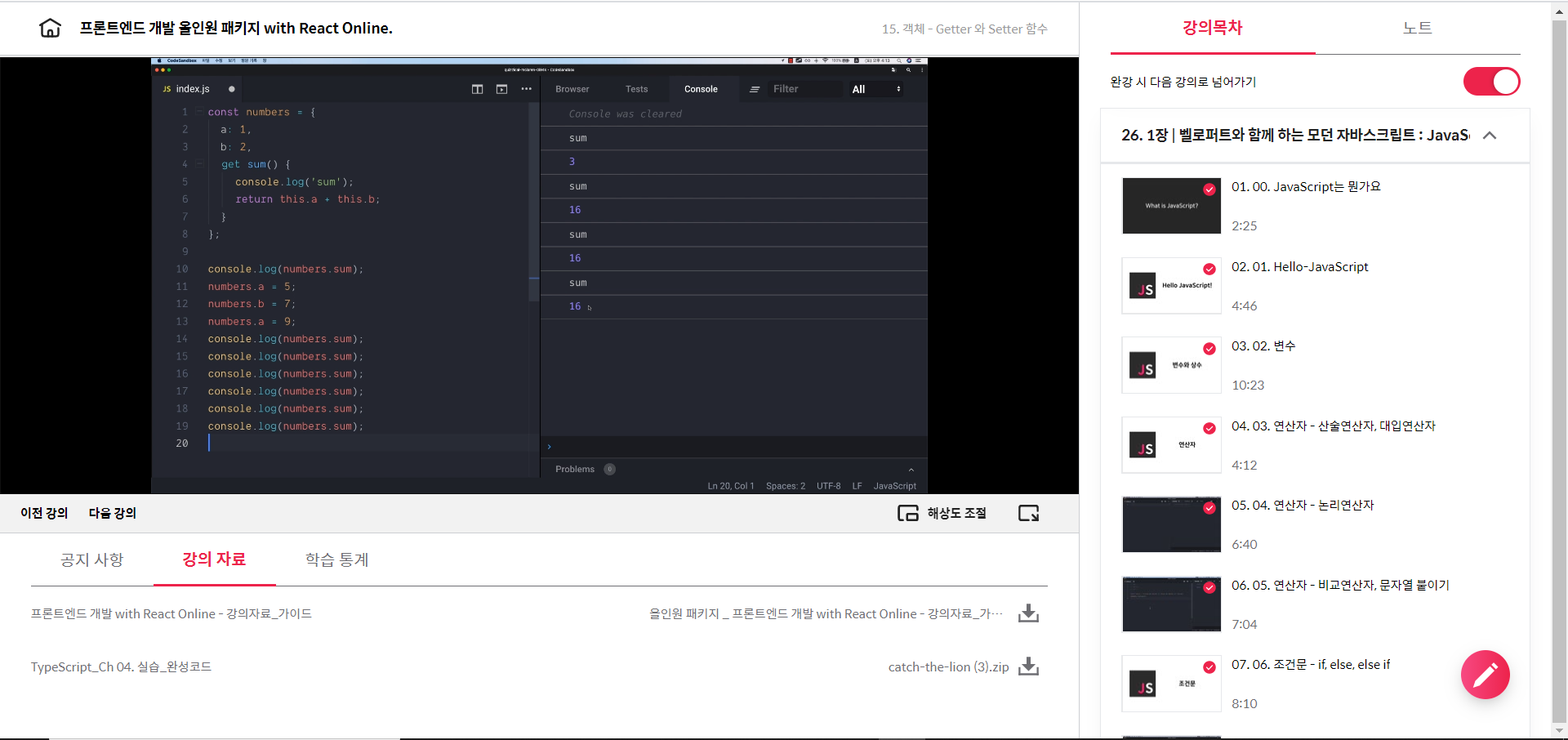 [패스트캠퍼스] 프론트엔드 인강 환급 챌린지(1) JavaScript - Getter/Setter, 배열, for..of/in