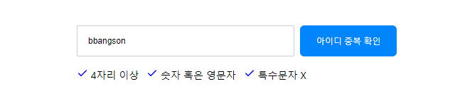 아이디 입력 폼 밑에 있는 아이콘 UI를 통해 현재 사용자가 자신이 올바르게 입력하고 있는지 확인할 수 있습니다.