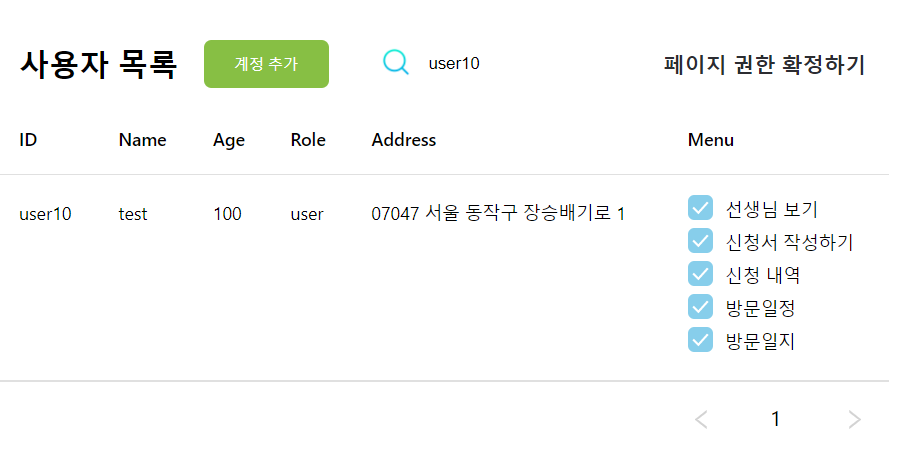 1. 관리자 페이지 - 검색 기능, 페이지 네이션. 유저 메뉴아이템 변경 기능