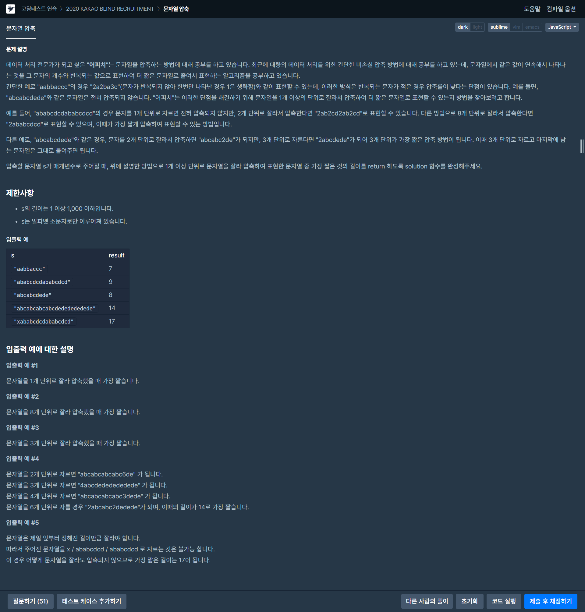 https://programmers.co.kr/learn/courses/30/lessons/60057?language=javascript
